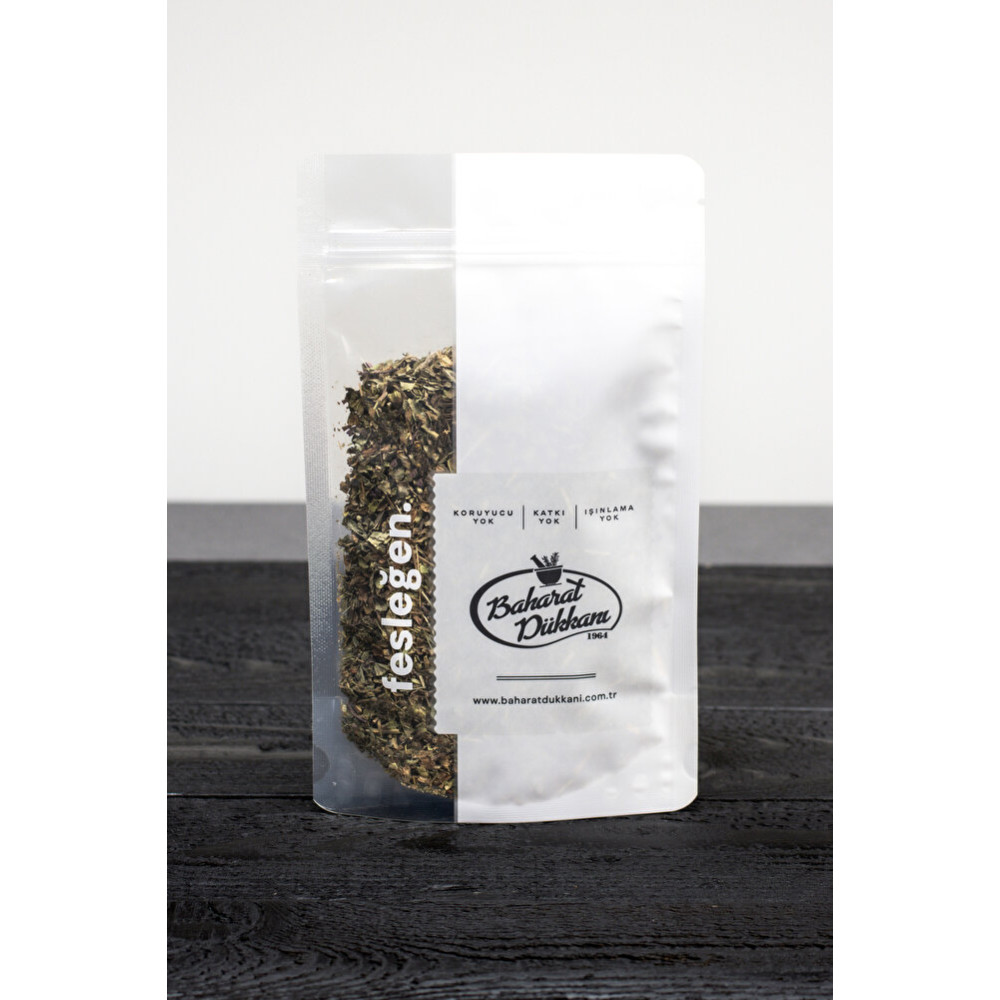 Miktar: 60 gr; Kullanım önerisi: et, tavuk ve balık yemeklerinde, salatalarda. bir fincan kaynamış suya, bir tatlı kaşığı atılıp 4-5 dakika demlenerek tüketilebilir.; Içindekiler: Fesleğen; Menşei: Türkiye;