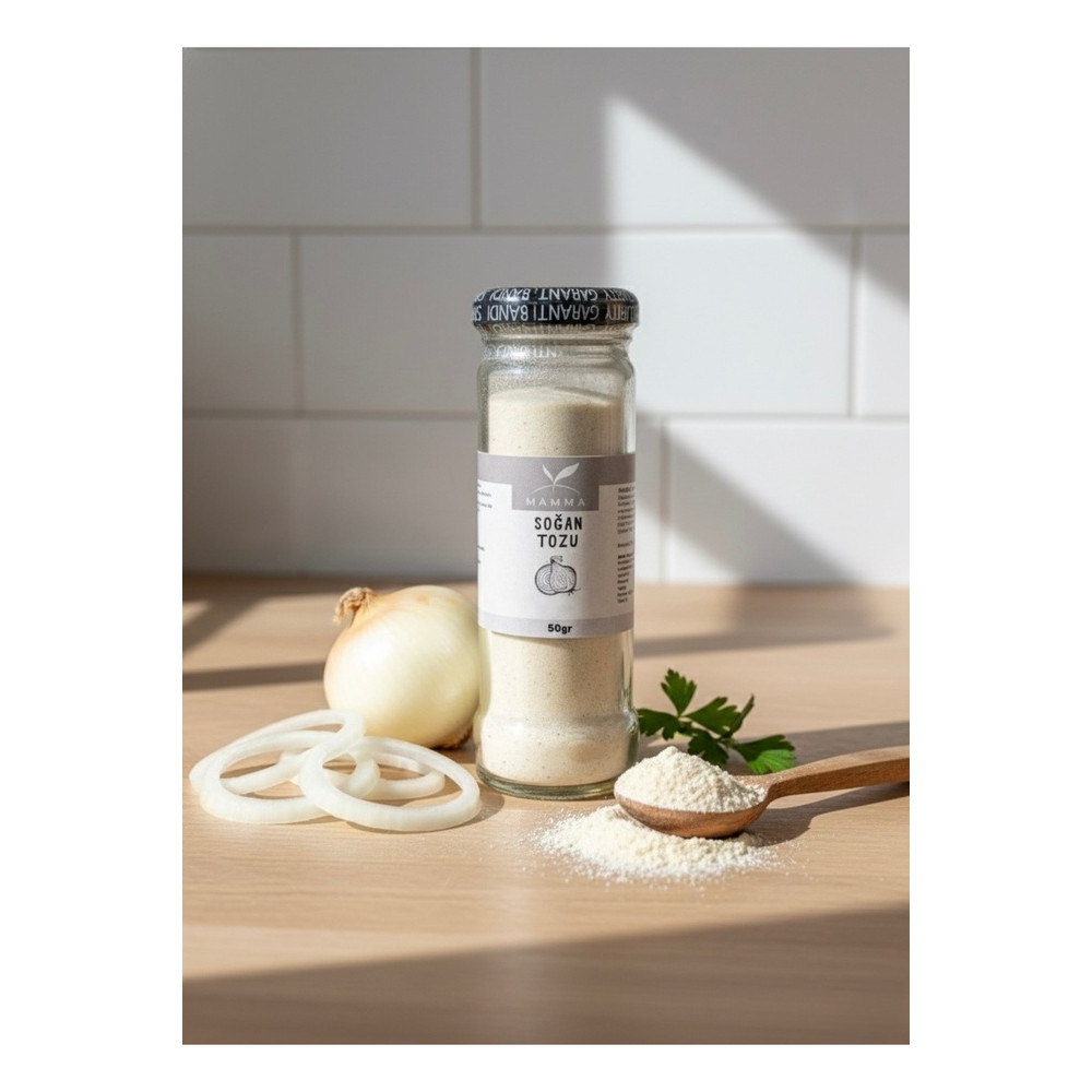 İçindekiler: Soğan tozu. ; Katkı ve koruyucu içermez. ; Taze ve doğal sebzelerin kurutulması ile elde edilir. ; Yaklaşık olarak 10 kg taze sebzenin kurutulmasıyla 1kg toz elde edilmektedir. ; Bu sayede besin değerleri taze sebzeye göre çok yüksektir. ; Gramajı:50gr Ürünlerimiz Tarım Bakanlığının izni ve denetiminde, ilgili mevzuat hükümlerine uygun olarak üretilmektedir. ; İşletme Kayıt No: TR-54- K-019901;